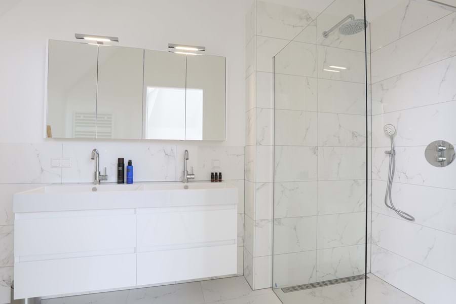 De tweede slaapkamer (4 x 6 m) beschikt eveneens over een tweepersoons boxspringbed (1,80 x 2,10 m) en een eigen luxe badkamer (6 m2) met grote regendouche, een bad en dubbele wastafel. Tevens beschikt het appartement over een aparte toilet en berging met wasmachine en droger. Op de begane grond bevindt zich een inpandige eigen berging. Een eigen parkeerplaats op het privéterrein kan voor €100,- per maand worden gehuurd. Ook kunt u gebruikmaken van de prachtige gemeenschappelijke tuin waar u kunt genieten van de weldadige rust die Zorgvliet te bieden heeft.