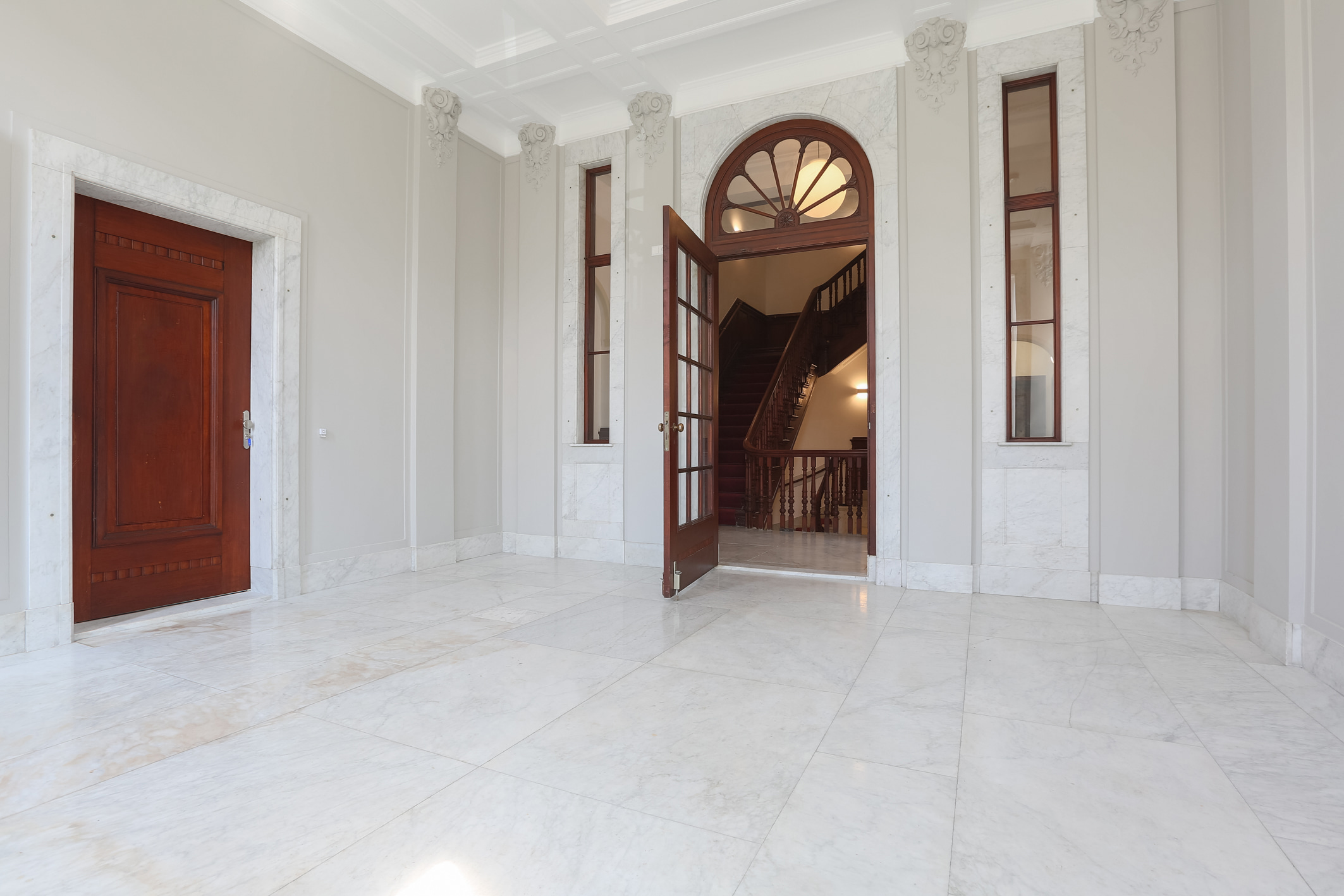 Layout: The entrance to the building leads through a marble floor vestibule into a grand central hall with an authentic monumental staircase. The apartment is located on the third floor and faces south-east. It can be reached either by stairs or by lift. The spacious living/dining room (96 m2) consists of 2 adjacent areas with high ceilings (3,20 m) and a authentic clockwork. The adjacent Next125 high gloss kitchen is equipped with brand new Siemens appliances – among others dishwasher, downdraft induction hob, multifunctional oven, Quooker and a separate microwave oven. The spacious bedroom (30 m2) is accessed from the living room. It has a double box spring bed (1,80 x 2,10 m) and its own luxury bathroom (6 m2) equipped with a bath, a separate shower and lavatory.