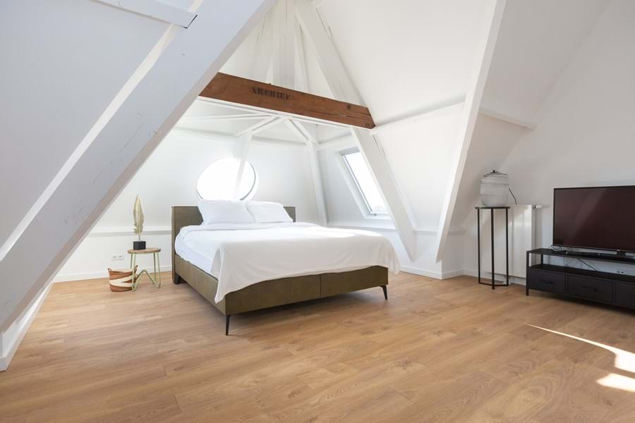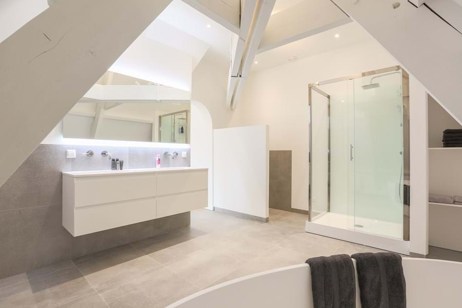 Vanuit de centrale ruimte met patio betreedt u via openslaande deuren de ruime en zonnige master bedroom (22 m2) welke is voorzien van een tweepersoons boxspringbed (1,80 x 2,00 m) en een eigen luxe badkamer van maar liefst 14 m2 met regendouche, vrijstaand ligbad, dubbele wastafel en toilet. De derde ruime slaapkamer (17 m2) is eveneens voorzien van een tweepersoons boxspringbed (1,80 x 2,00 m), een tv-meubel met een 49 inch 4K Smart TV en een luxe badkamer (7 m2) met regendouche, vrijstaand ligbad en wastafel. Tevens beschikt het penthouse over 2 aparte toiletten en een ruime berging met wasmachine en droger. Op de begane grond bevindt zich een inpandige eigen berging. Twee eigen parkeerplaatsen op het privéterrein kunnen voor €100,- per parkeerplaats per maand worden gehuurd. Ook kunt u gebruikmaken van de prachtige gemeenschappelijke tuin waar u kunt genieten van de weldadige rust die Zorgvliet te bieden heeft.